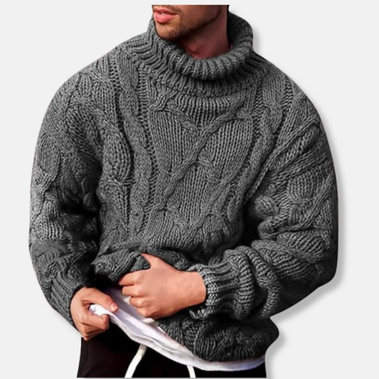 Men's Sweater – Knit – Relaxed Fit – Thick Cable Knit – High Turtleneck
