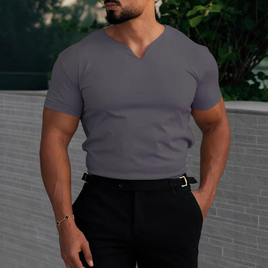 Men's V-Neck T-Shirt – Slim Fit – Breathable Stretch – Short Sleeve – Sleek Design