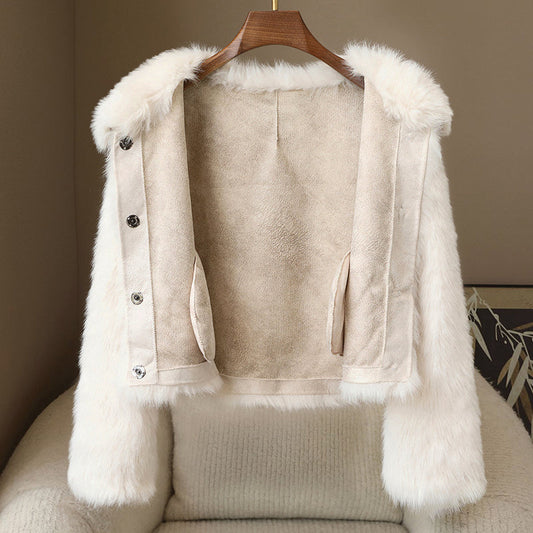 Sienna Cropped Short Coat | Fur Trim Button Closure Short Coat