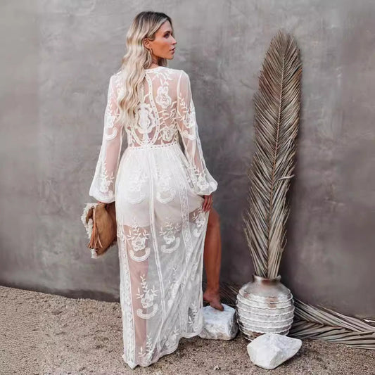 Dress for Women – Long Lace Dress – V-Neck – Loose Fit – Long Sleeves