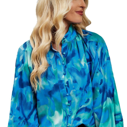 Women's Blouse – Relaxed Fit – Light and Breathable – Button Closure and Artistic Print