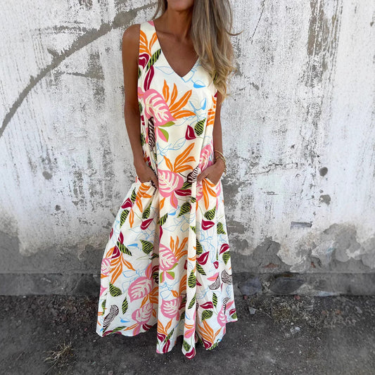 Dress for Women – Maxi A-line – Tropical Pattern – Sleeveless – Light and Breathable