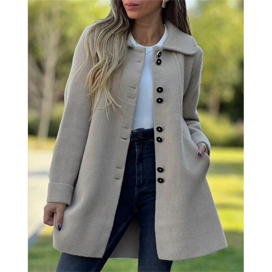 Women's Coat – Wool – Structured Fit – Wide Collar – Button Closure – Mid-Length