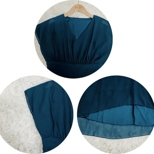 Women's Cocktail Dress - Asymmetric Cut - Short Sleeves - V-Neck - Elegant Party Dress