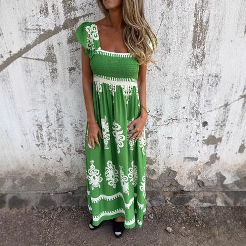 Dress for Women – Maxi Dress – Smocked Bodice – Ruched Sleeves – Natural Fibers – Loose Fit
