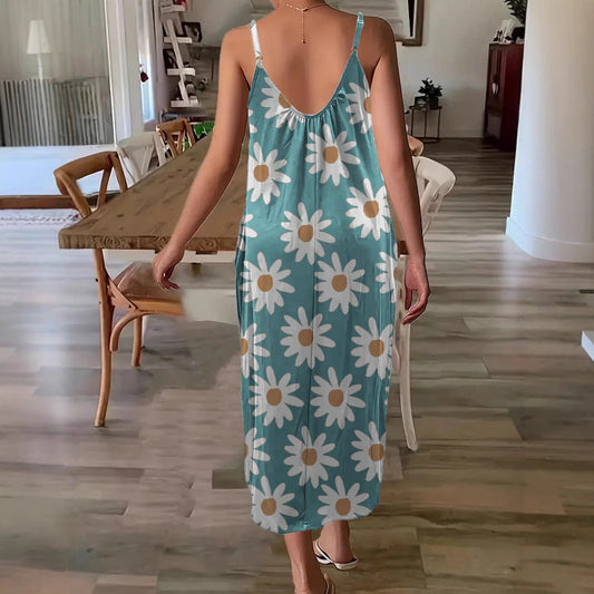 Dress for Women – Maxi Length – Loose Fit – Spaghetti Straps – Floral Print – Breathable Fabric