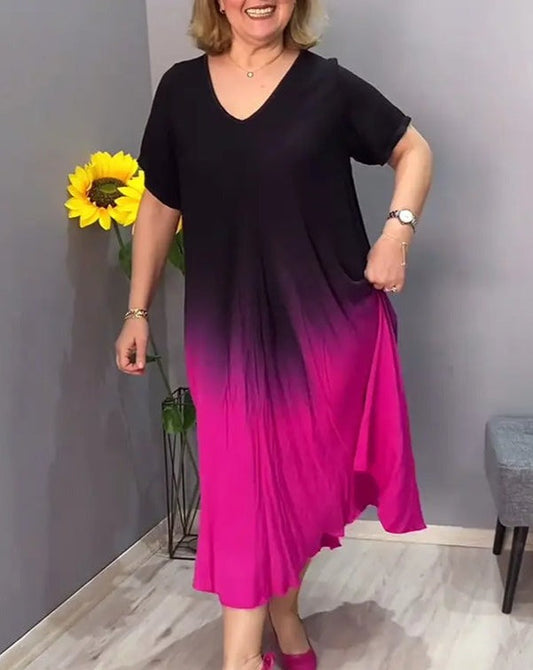 Women's Dress – Loose Fit – V-Neck – Knee Length – Short Sleeves – Soft Drape