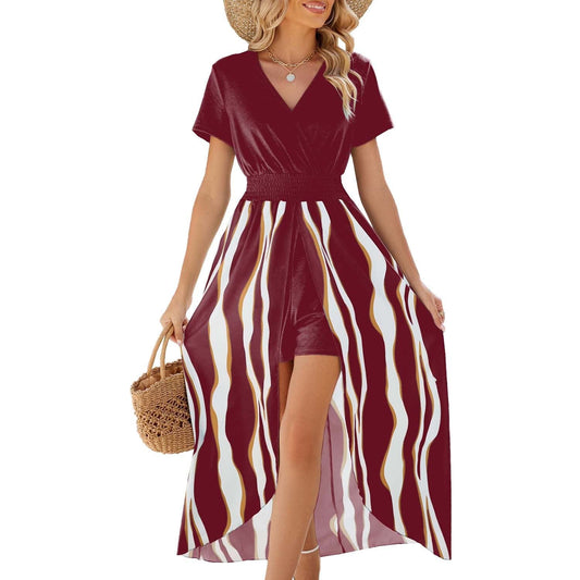 Dress for Women – Maxi Length – V-Neck Wrap – Breathable Light Fabric – Built-In Shorts