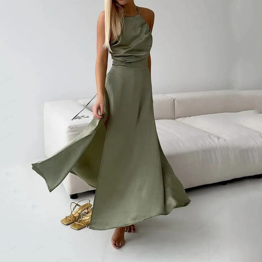 Dress for Women – Maxi Length – Slim Fit – Halterneck – Open Back – Side Slit