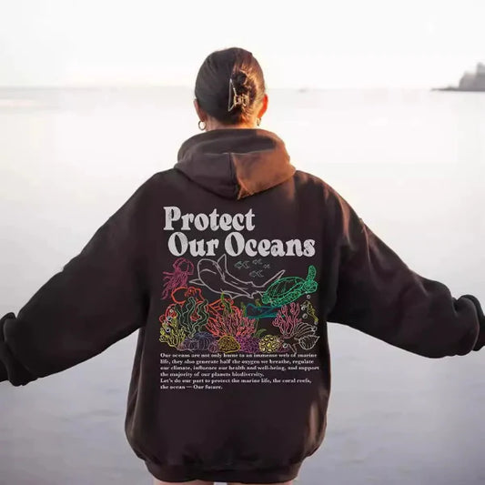 Women's Hoodie – Oversized Fit – Soft Cotton Look – Printed Back Design