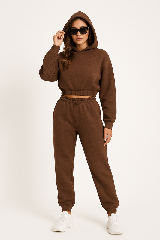 Women's Jogging Set – Relaxed Fit – Soft Cotton – Ribbed Edges – Hood & Drawstring