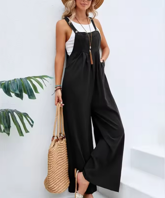 Women's Jumpsuit - Cotton Linen - Wide Legs - Adjustable Straps - Relaxed Fit