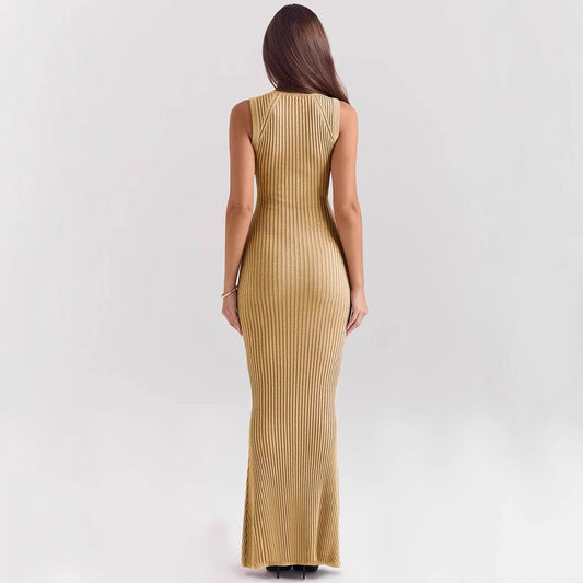 Women's Knit Dress – Slim Fit – Sleeveless – Button Closure – Round Neck – Midi Length
