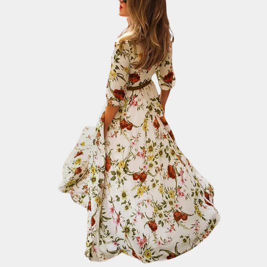 Women's Maxi Dress - Bohemian Style - V-Neck - Light and Airy - Floral Print