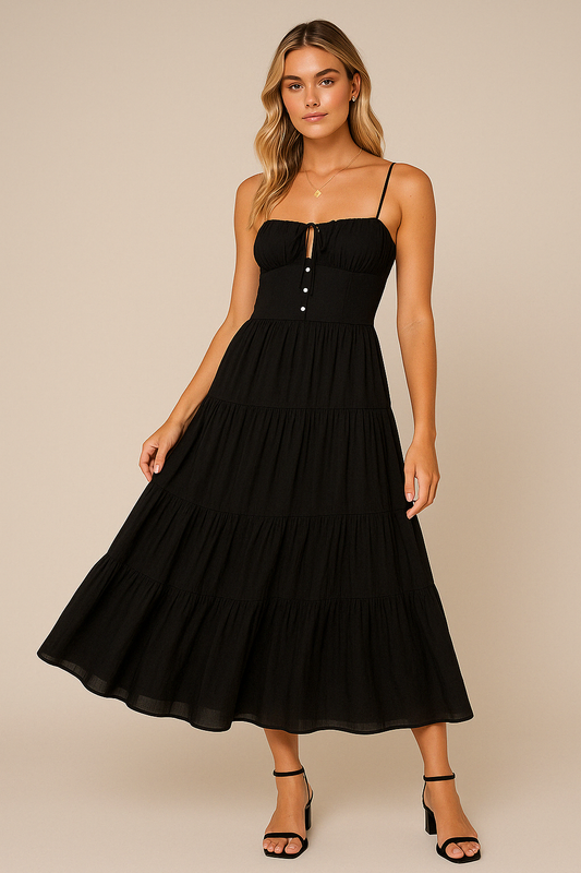 Women's Maxi Dress – Light and Breathable – Spaghetti Straps – Layered Skirt – Elegant Fit