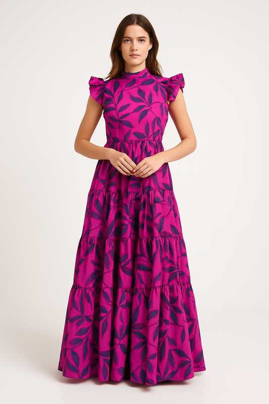 Women's Maxi Dress – Lightweight Ruffle Skirt – Ruched Waist – Print – Elegant Fit