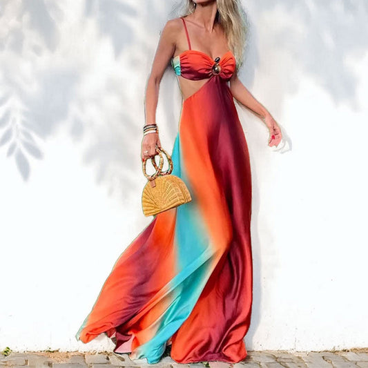 Women's Maxi Dress – Lightweight Fabric – Flowy Fit – Spaghetti Straps – Gradient Design