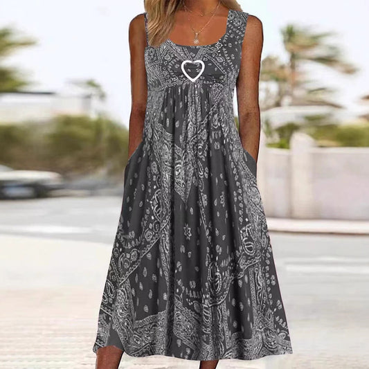 Women's Maxi Dress – Sleeveless A-Line – Bandana Print – Light and Breathable – With Pockets