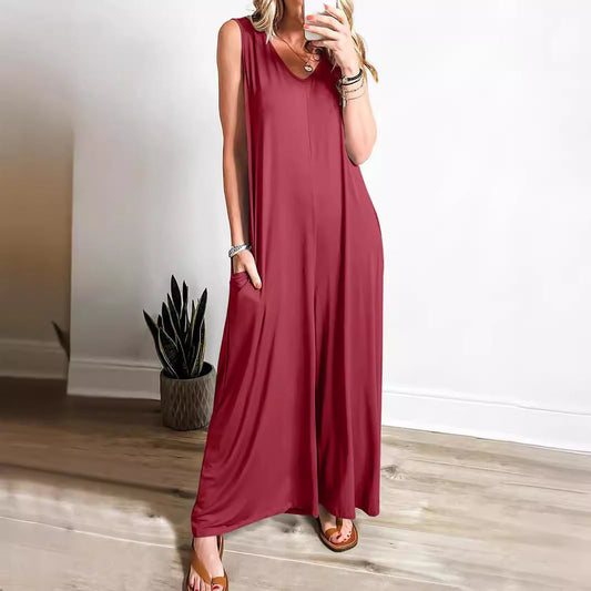 Women's Maxi Dress – Sleeveless – Deep V-Neck – Loose Fit – Light and Breathable