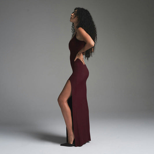 Women's Maxi Dress – Slim Fit – Spaghetti Straps – Slit – Backless Evening Look