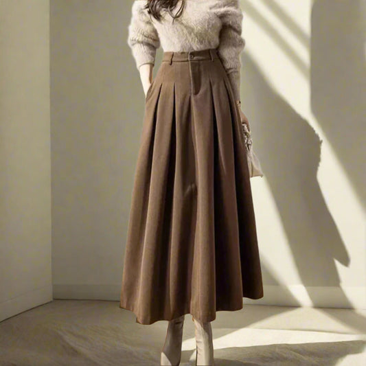 Women's Maxi Skirt - High Waist - Pleated Design - Elegant and Versatile