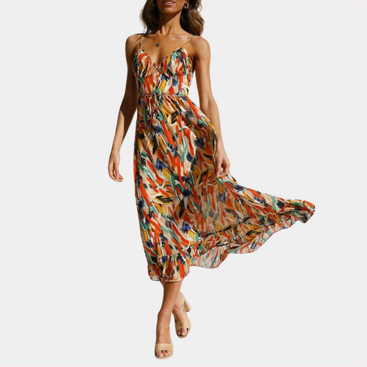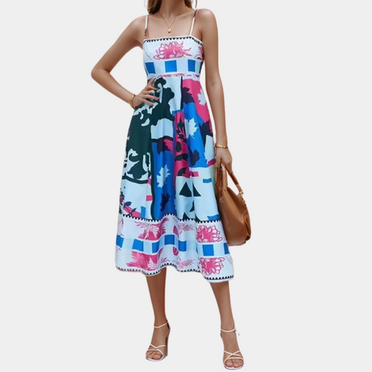 Women's Midi Dress - Abstract Print - Spaghetti Straps - Flowy Fit - Elegant Look