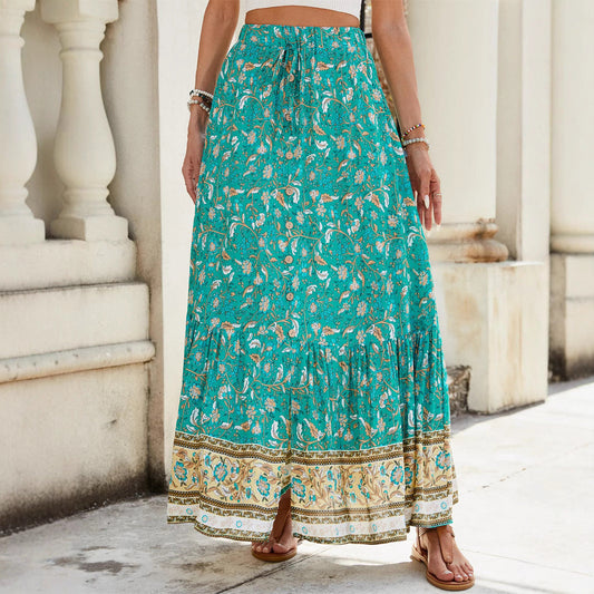 Women's Maxi Skirt – Light and Breathable – Bohemian Style – Layered – Drawstring Closure
