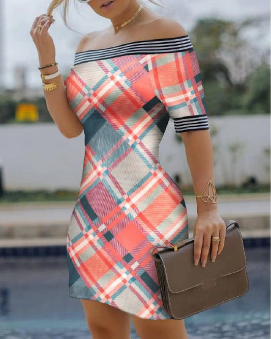 Women's Off-Shoulder Dress – Slim Fit – Mini Length – Breathable Lightweight – Graphic Print