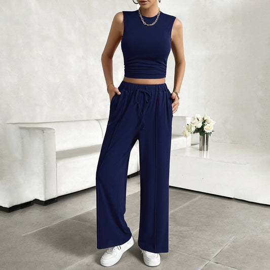Women's Set – Sleeveless Top and Wide Pants – Relaxed Fit – Breathable Comfort