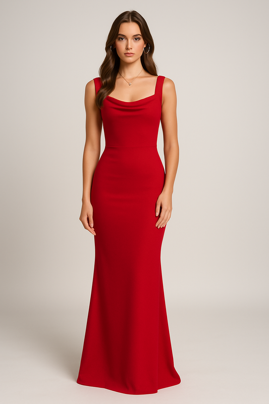Dress for Women – Sleeveless Maxi Dress – Draped Neckline – Tailored Luxury Fabric