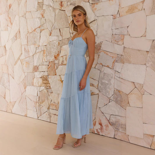 Dress for Women – Sleeveless A-line – Mid-length with Layered Skirt – Open Back