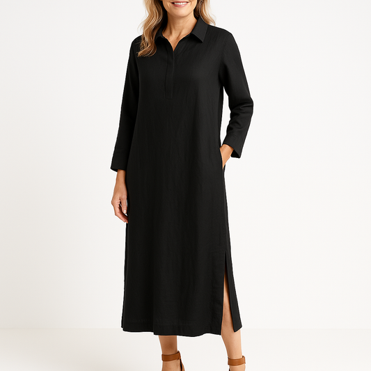 Women's Shirt Maxi Dress – Relaxed Fit – Button Closure – Breathable Natural Material – Long Sleeves