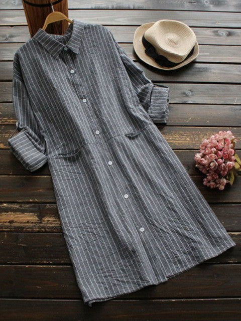 Women's Shirt – Midi Length – Relaxed Fit – Cotton – Striped with 3/4 Sleeves