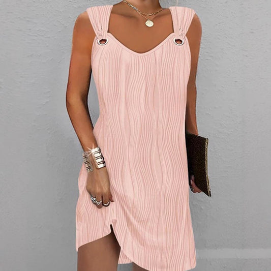 Dress for Women – Slim Fit Mini Length – 3D Floral Texture – Sleeveless – Deep Neckline