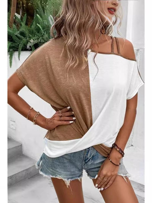 Women's T-shirt – Relaxed Fit – Off Shoulder Strap – Lightweight and Breathable – Colorblock