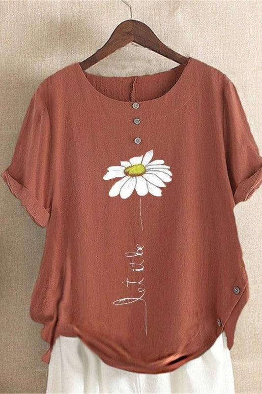 Women's T-shirt – Relaxed Fit – Round Neck – Lightweight and Breathable – Floral Design