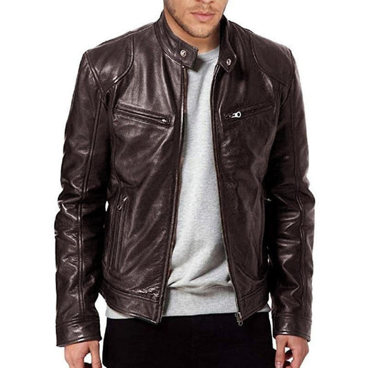 Men's Biker Jacket – Slim Fit – Zipper Closure – Lined – Stand Collar
