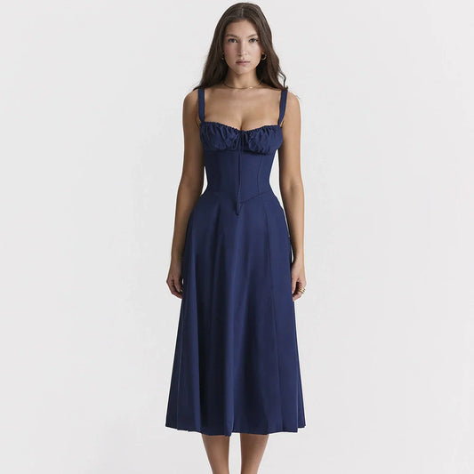 Dress for Women - Midi Satin - Corset Top - A-line Fit - Sweetheart Neckline