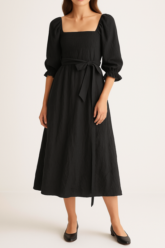 Dress for Women – A-line Fit – Smocked Bodice – Puff Sleeves – Reversible Design