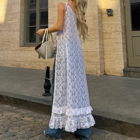 Dress for Women – A-line Fit – V-neck – Lace – Slit – Bow Straps
