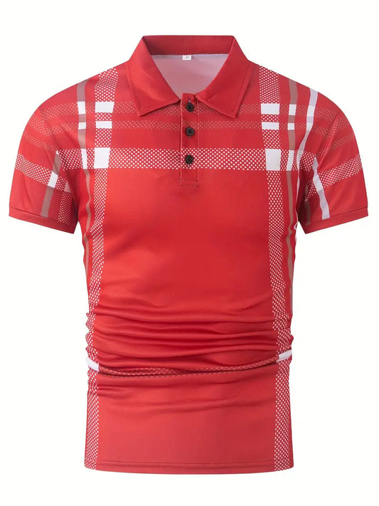 Men's Polo Shirt - Breathable Cotton - Regular Fit - Short-Sleeved Geometric Design