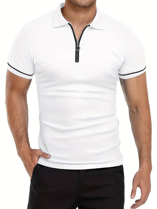 Men's Polo Shirt - Slim Fit - Short Sleeves - Half Zipper - Comfortable & Stylish
