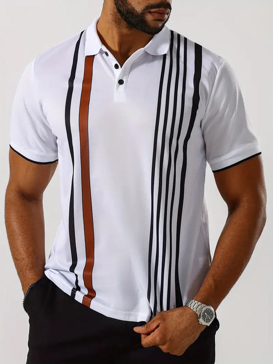 Men's Polo Shirt - Striped Design - Tailored Fit - Short-Sleeved Breathable Casual