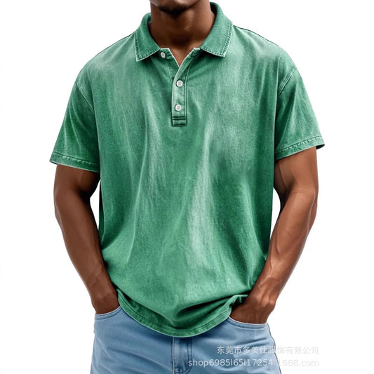 Men's Polo Shirt – Cotton – Relaxed Fit – Washed Retro Style – Short Sleeve