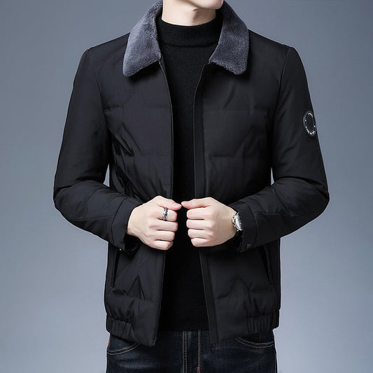 Men's Puffer Jacket – Slim Fit – Short Length – Detachable Fur Collar – Warm and Water-Repellent