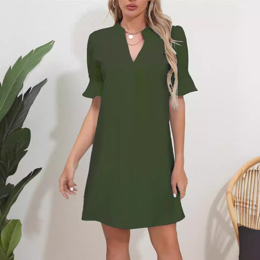 Dress for Women – A-line Fit – V-neck – Short Sleeves with Ruffles – Casual Style
