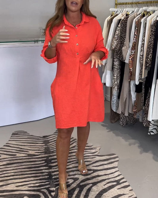 Women's Shirt Dress - Relaxed Fit - Button Closure - Long Sleeves - Textured Design