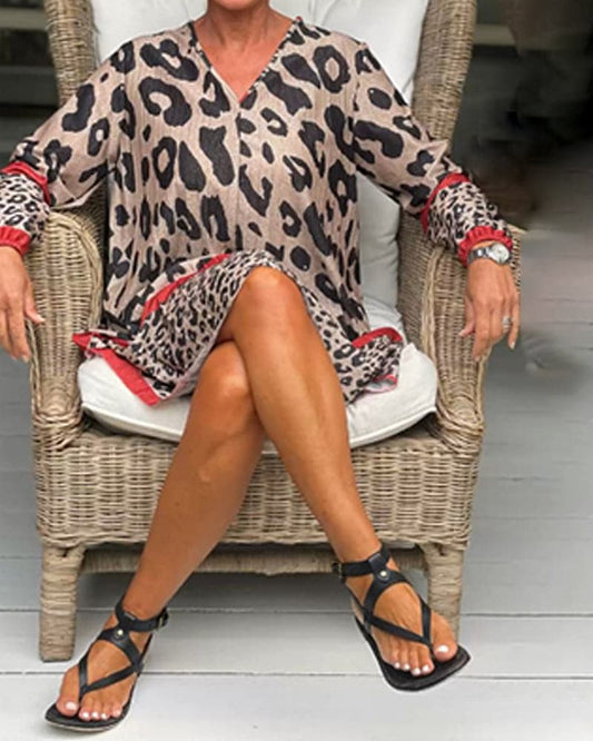 Women's Dress - Loose Fit - V-Neck - Long-Sleeved - Comfortable Casual Look