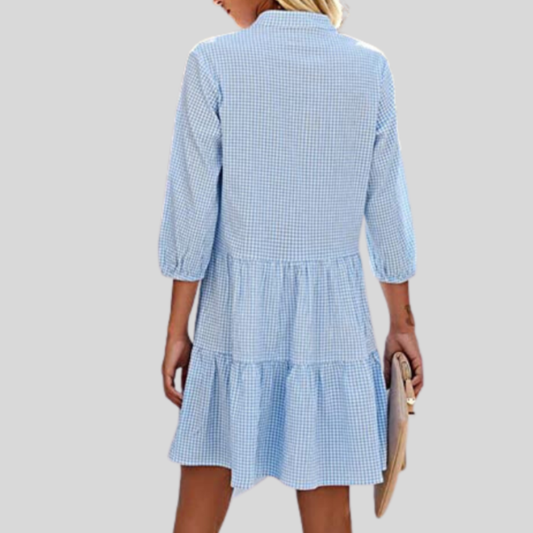 Women's Dress - Cotton - Loose Fit - Checkered Pattern - Button Closure - Knee Length