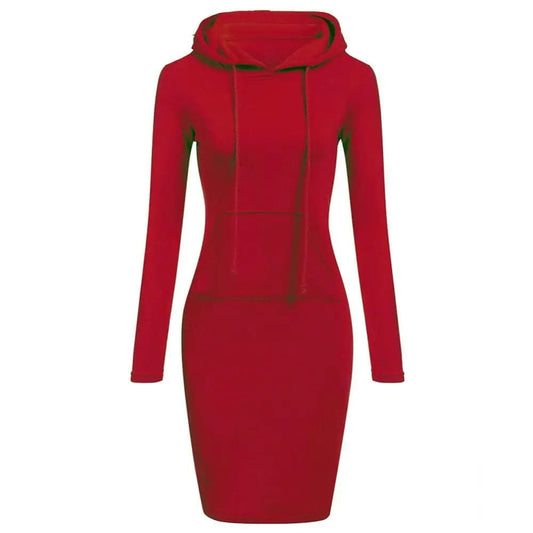 Women's Hoodie Dress - Long Sleeve - Adjustable Hood - Kangaroo Pocket - Slim Fit